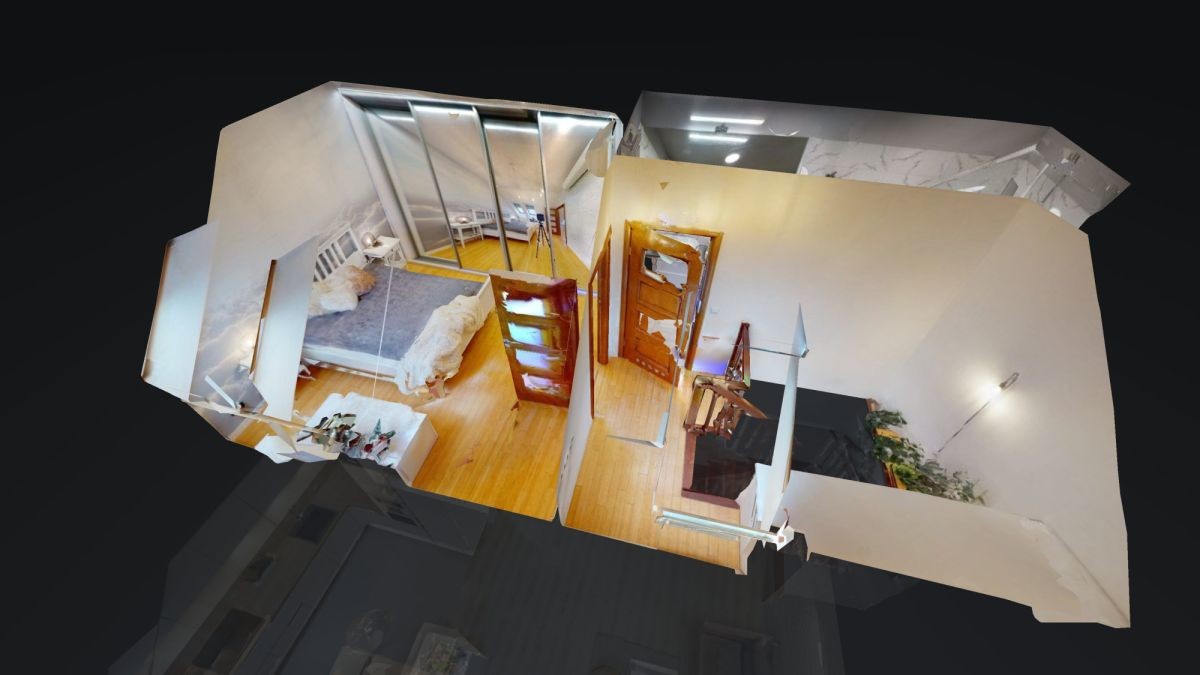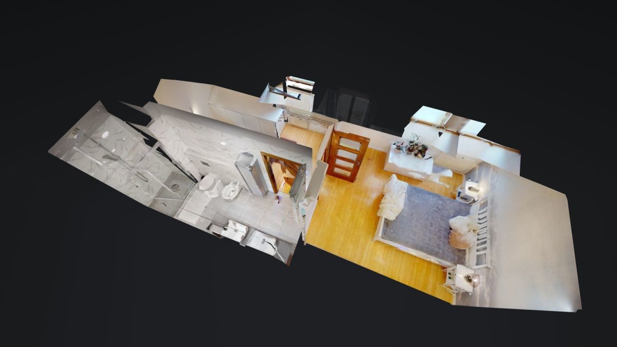 - Sypialnia połączona z szafą w zabudowie - garderobą, z możliwością wydzielenia miejsca do pracy.